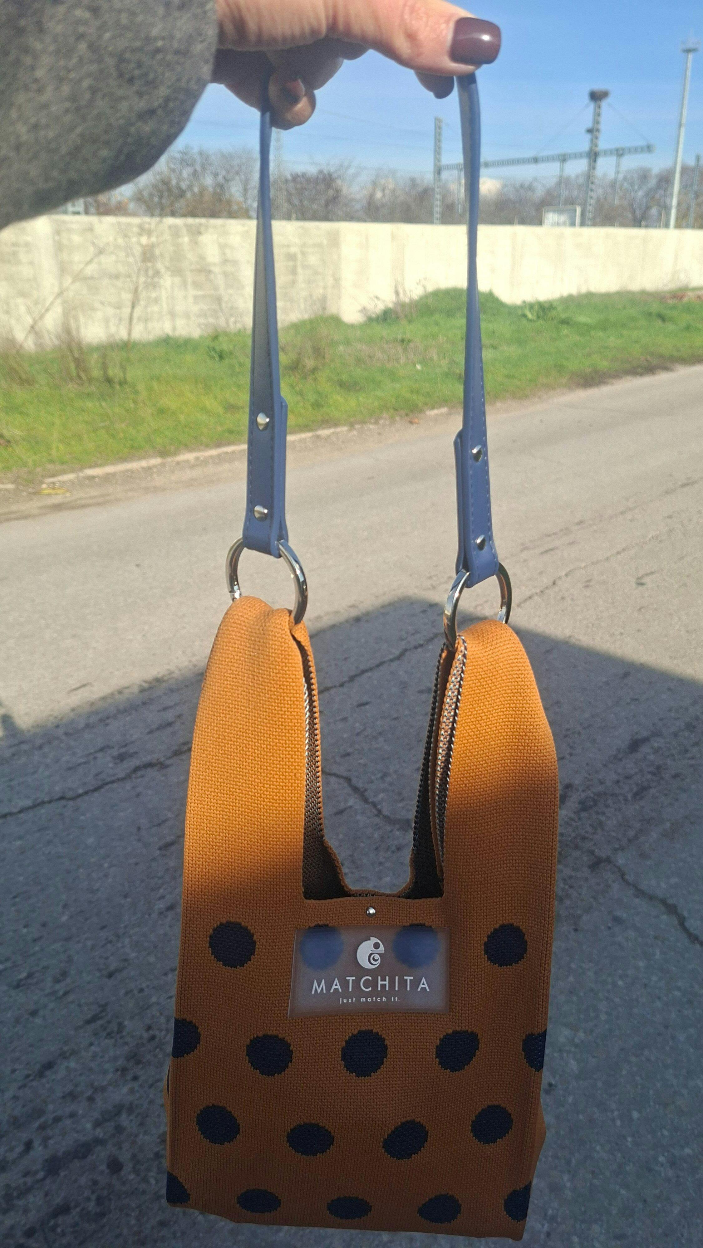 MATCHITA чантата Caramel Brown & Navy Dots е истинско въплъщение на елегантност с доза закачливост. Нейният изтънчен карамелено кафяв фон, изпъстрен с тъмносини точки, създава баланс между класика и игрив стил. Перфектно подходяща за сезона, тази чанта ще бъде твоят незаменим аксесоар. С подходяща MATCHITA strap можеш лесно да промениш нейния облик – от стилно ежедневие до ефектен акцент за специален повод – само с едно движение.